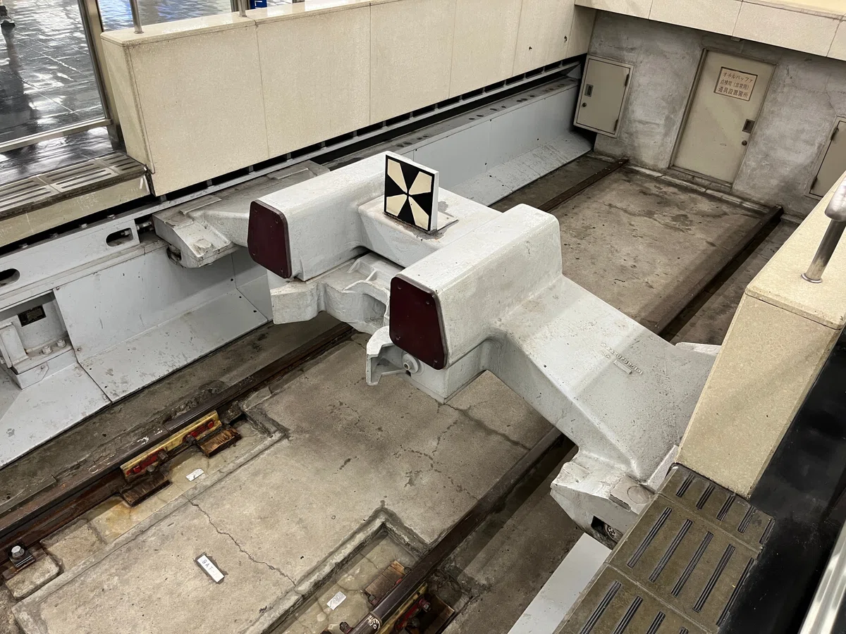 ②首先着眼于在光和真昼的 Revue 之前乘坐的地铁。乘车站以伦敦地铁为原型,但作为到达站的“舞台左侧入口站”是日本地铁站的结构和设备。车站本身是用明挖回填法(从地上进行挖掘,在地下的地方建造必要的结构物后重新填埋)建造的,在世界范围内都是在常规地质,以及非密集地下施工的常见方法。站内钢轨由于没有道砟的描写,推测采用了接近 B 型弹性轨枕直结钢轨的结构,车挡附近则呈现为板式钢轨或普通直结钢轨的样貌。另外,由于钢轨和侧壁接近,与作品中的其他轨道不同,推测是按标准轨道(轨道间 1435mm)铺设的。考虑到这一点,从钢轨的高度和轨距来看,推测这边也使用了 50kg 的钢轨。钢轨末端的车挡采用缓冲式车挡,并设有照明式车挡标识。其主体结构原型推测是日本车辆制造制造的、带液压阻尼器的直接连接臂型车挡。(图 5)[8]