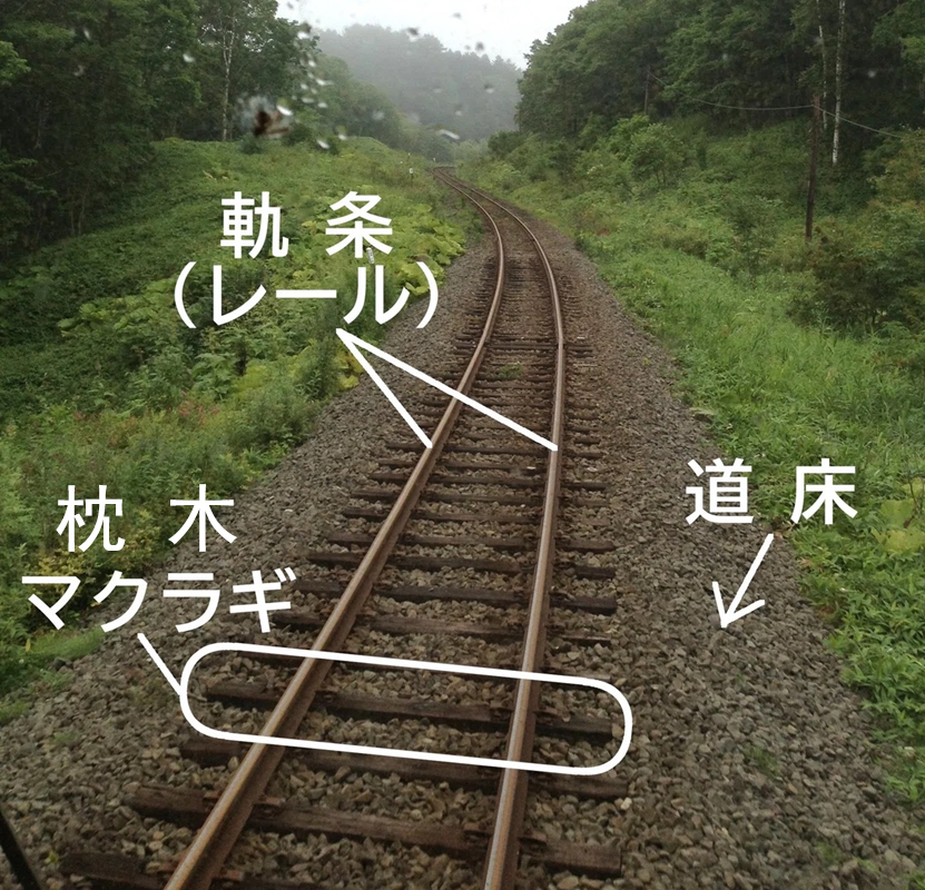 首先,要说“轨道”是什么的话,大家可以想象一下平时通称之为“铁路”的东西。若专业性地解说,常见的轨道,如图 1 所示,自上而下主要由钢轨、枕木、道床这 3 个部分构成。或许可以简单地理解为竖着的是轨道,横着的是枕木,最下面的是道床。另外,狭义上的铁道术语的“铁路”中,道床下方的路基,桥梁、隧道等结构物、电车线和架线柱、信号和保安装置等运行所需的设备等也会被包含其中(图 1)。